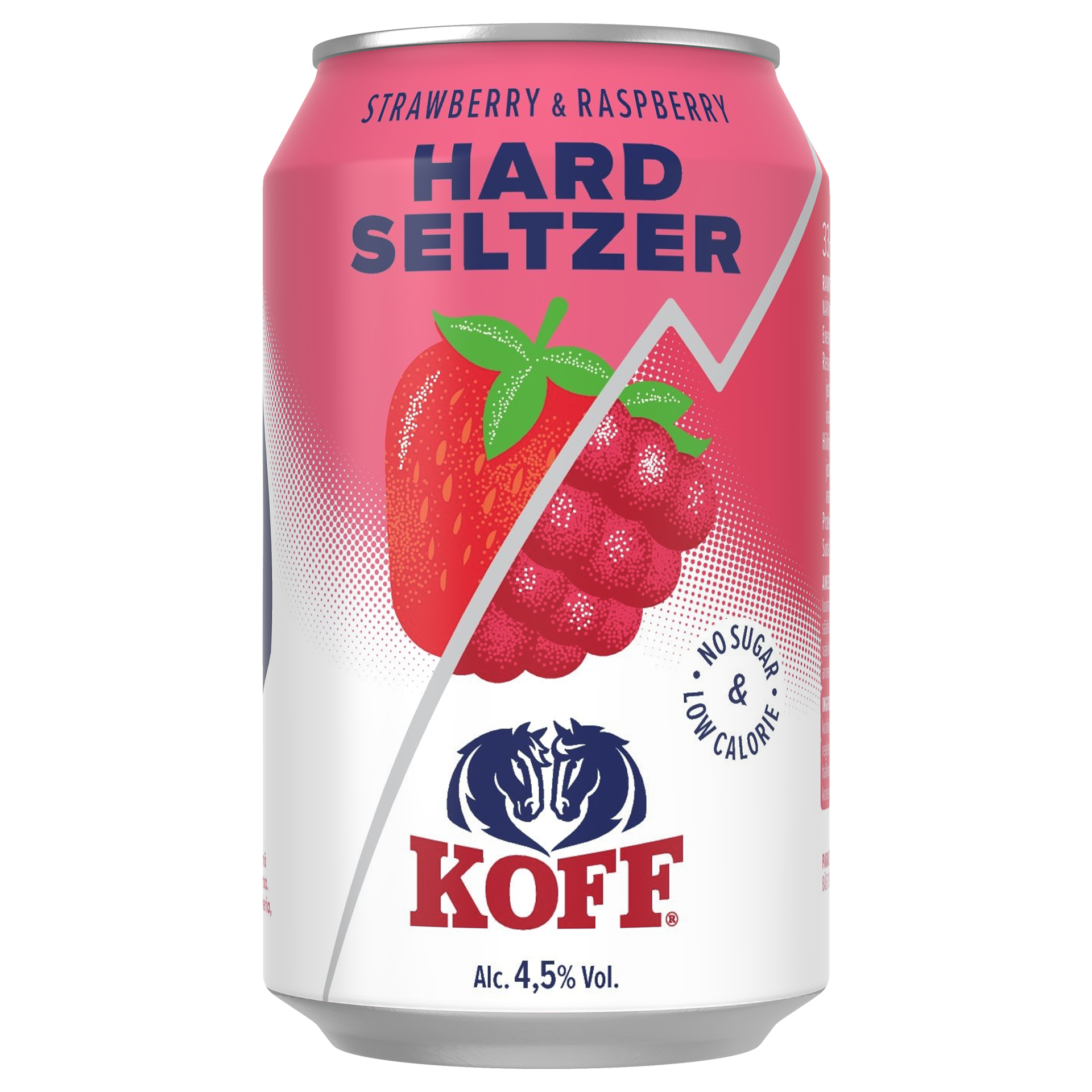 KOFF Hard Seltzer Strawberry-Raspberry 4,5% on raikas ja vähäkalorinen alkoholijuomasekoitus, jonka maussa yhdistyy maukas mansikka ja vadelma sekä terästetty hiilihapotettu vesi.