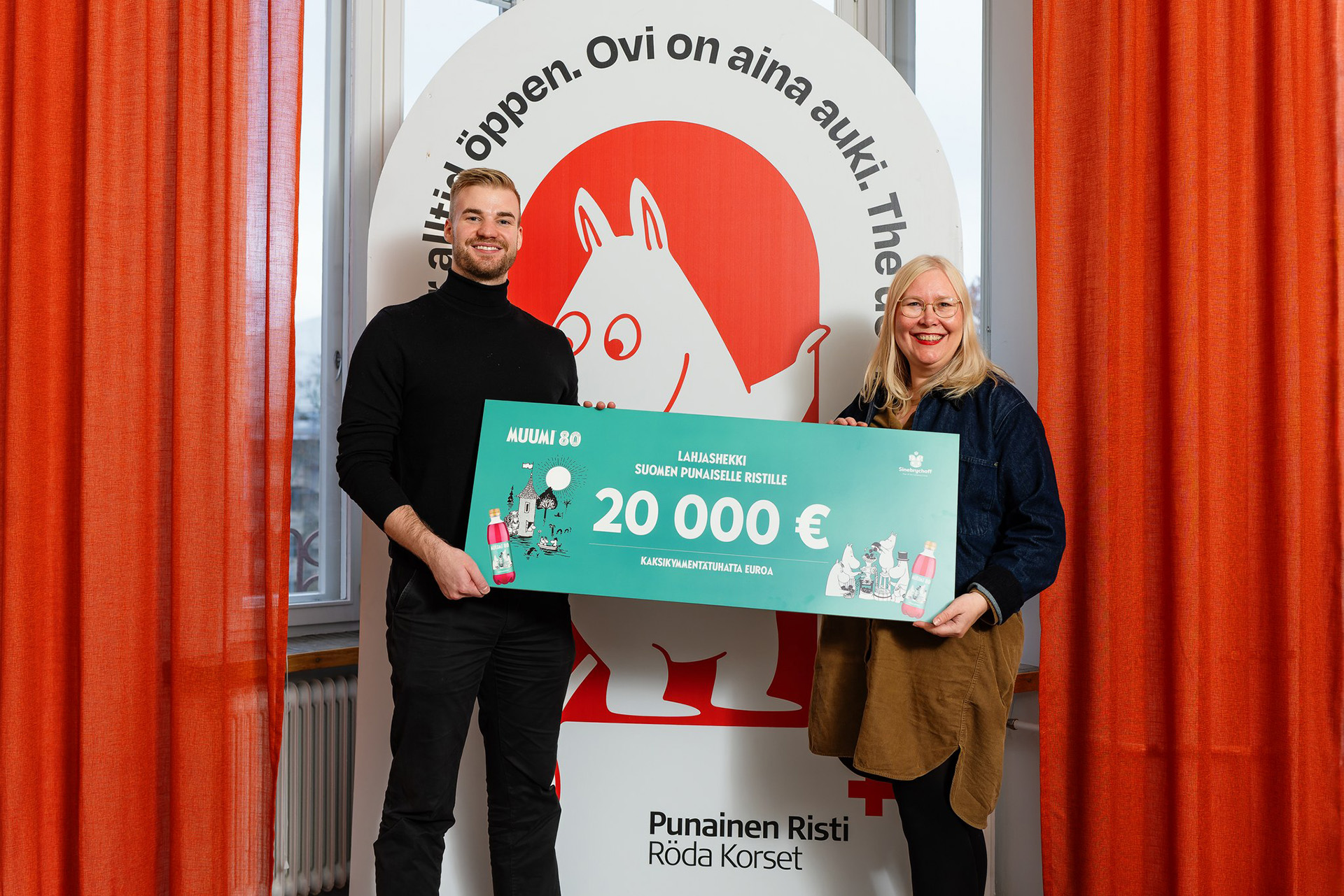 ”Halusimme juhlistaa juhlavuotta ja samalla pitkää yhteistyötämme uudella Muumi-virvoitusjuomalla. Muumit syntyivät vaikeana aikana ja on ikävää, että ongelmat eivät ole maailmasta kadonneet. Juhlajuomaan sopikin siten kumppanuus Suomen Punaisen Ristin kanssa. Muumit ovat tuoneet lohtua ja iloa miljoonille ihmisille eri aikoina ja on ollut hienoa olla mukana Muumin tarinassa”, kertoo Valtteri Salmivalli, Muumi-virvoitusjuoman tuotepäällikkö Sinebrychoffilla.